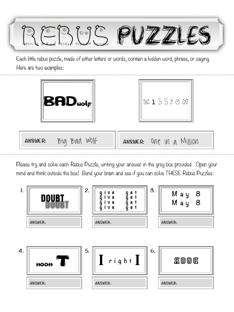 Brain teaser answer key rebus puzzles with answers printable.